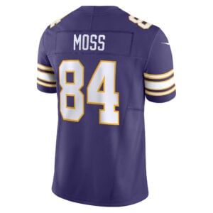 Classic tradition meets modern style in the Randy Moss Minnesota Vikings Purple Classic Vapor F.U.S.E Limited Jersey – All Stitched. Featuring stitched names and numbers, embroidered logos, and iconic team patches, this edition links Minnesota state football culture with Moss’s extraordinary contributions on the field.