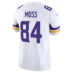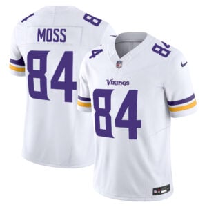 Carry Minnesota pride on the road with the Randy Moss Minnesota Vikings White Away Vapor F.U.S.E Limited Jersey – All Stitched. Featuring stitched lettering, embroidered logos, and state-inspired detail, this jersey celebrates Moss’s dominance while honoring Minnesota football culture. Fans can wear it with pride across any stadium nationwide.