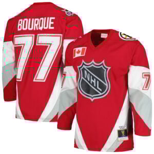 Relive hockey’s biggest stage with the Boston Bruins Red 1999 All Star Game Blue Line Jersey honoring Ray Bourque. Featuring stitched name, number, embroidered logos, and All-Star patches, it celebrates Bourque’s remarkable legacy among the league’s elite. The vibrant red color contrasts beautifully with Boston’s usual palette, representing pride, prestige, and passion from the heart of Massachusetts. A perfect collectible for fans who value history and all-time greatness.