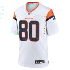 Carry Broncos energy on the road with this Rod Smith White Away Game Jersey. Complete with stitched name, embroidered numbers, patch, and logos, it reflects Colorado pride, Denver Broncos (DEN) identity, and Smith’s university background.