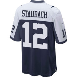 This Roger Staubach Dallas Cowboys Navy Alternate Game Jersey – All Stitched is an essential piece of gear for any Dallas Cowboys fan looking to highlight their favorite jersey and player. The Roger Staubach Dallas Cowboys Navy Alternate Game Jersey and team details provide a kickoff-ready look that elevates your excitement for game day. Made with comfort in mind, this Personalized Dallas Cowboys jersey delivers a standard, lightweight fit and features breathable mesh side panels for added ventilation.