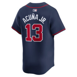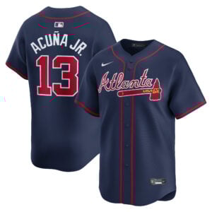 This Ronald Acuna Jr Atlanta Braves Navy Alternate Limited Jersey – All Stitched is an essential piece of gear for any Atlanta Braves fan looking to highlight their favorite jersey and player. The Ronald Acuna Jr Atlanta Braves Navy Alternate Limited Jersey and team details provide a kickoff-ready look that elevates your excitement for game day. Made with comfort in mind, this Atlanta Braves jersey delivers a standard, lightweight fit and features breathable mesh side panels for added ventilation.