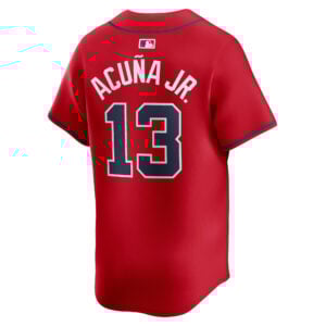 This Ronald Acuna Jr Atlanta Braves Red Alternate Limited Jersey – All Stitched is an essential piece of gear for any Atlanta Braves fan looking to highlight their favorite jersey and player. The Ronald Acuna Jr Atlanta Braves Red Alternate Limited Jersey and team details provide a kickoff-ready look that elevates your excitement for game day. Made with comfort in mind, this Atlanta Braves jersey delivers a standard, lightweight fit and features breathable mesh side panels for added ventilation.