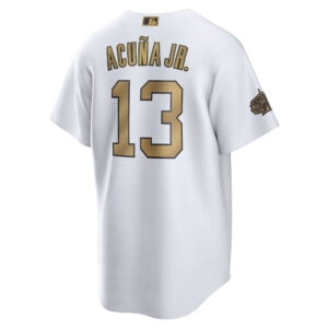 This Ronald Acuna Jr Atlanta Braves White 2022 All-Star Jersey – All Stitched is an essential piece of gear for any Atlanta Braves fan looking to highlight their favorite jersey and player. The Ronald Acuna Jr Atlanta Braves White 2022 All-Star Jersey and team details provide a kickoff-ready look that elevates your excitement for game day. Made with comfort in mind, this Atlanta Braves jersey delivers a standard, lightweight fit and features breathable mesh side panels for added ventilation.