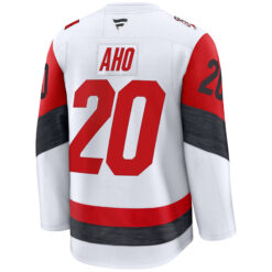 The Sebastian Aho Carolina Hurricanes White Away Jersey – All Stitched provides a timeless road look with stitched name and number, embroidered Hurricanes crest, and durable patches. North Carolina hockey loyalty shines through in this piece built for Canes fans everywhere.