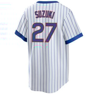 This Seiya Suzuki Chicago Cubs White 1968 Cooperstown Collection Jersey – All Stitched is an essential piece of gear for any Chicago Cubs fan looking to highlight their favorite jersey and player. The Seiya Suzuki Chicago Cubs White 1968 Cooperstown Collection Jersey and team details provide a kickoff-ready look that elevates your excitement for game day. Made with comfort in mind, this Chicago Cubs jersey delivers a standard, lightweight fit and features breathable mesh side panels for added ventilation.