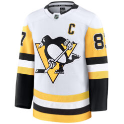 The Sidney Crosby Pittsburgh Penguins White Away Premium Jersey – All Stitched showcases the clean, striking look of the Penguins on the road. With the classic white base and black-and-gold detailing, this jersey reflects the unity and pride of the Pittsburgh community. The stitched logo, embroidered name and number, and carefully sewn patches highlight the craftsmanship behind every detail. Whether cheering from afar or in the arena, fans can proudly wear this jersey to honor Crosby’s unmatched career and the Penguins’ tradition of excellence. It’s a refined expression of Pennsylvania’s enduring hockey culture.