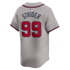This Spencer Strider Atlanta Braves Grey Road Limited Jersey – All Stitched is an essential piece of gear for any Atlanta Braves fan looking to highlight their favorite jersey and player. The Spencer Strider Atlanta Braves Grey Road Limited Jersey and team details provide a kickoff-ready look that elevates your excitement for game day. Made with comfort in mind, this Atlanta Braves jersey delivers a standard, lightweight fit and features breathable mesh side panels for added ventilation.