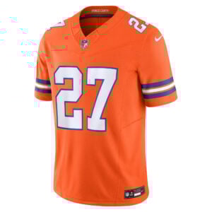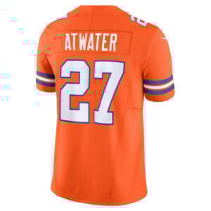 The Mile High Collection meets modern Vapor F.U.S.E innovation in this Steve Atwater 1977 Throwback Jersey. Bright Colorado orange with stitched name, embroidered numbers, retro patch, and embroidered logos create a piece that celebrates Denver Broncos (DEN) heritage and Atwater’s Razorbacks foundation.