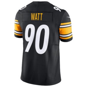 Suit up like a legend in the T.J. Watt Pittsburgh Steelers Black Vapor F.U.S.E Limited Jersey – All Stitched. This premium jersey features fully stitched name, number, and details for a high-quality, stunning look. Designed in the Steelers’ classic black and gold, it’s perfect for game day or everyday fan wear. Whether you’re cheering from the stands or watching from home, show your Pittsburgh pride and rep Watt in style. A must-have for any true Steelers fan!