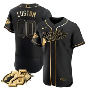 Tampa Bay Rays 25th Anniversary Black Gold Custom Jersey – All Stitched