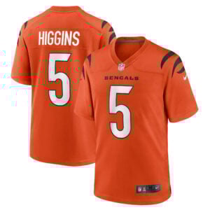 This Tee Higgins Cincinnati Bengals Orange Alternate Game Jersey – All Stitched is an essential piece of gear for any Cincinnati Bengals fan looking to highlight their favorite jersey and player. The Tee Higgins Cincinnati Bengals Orange Alternate Game Jersey and team details provide a kickoff-ready look that elevates your excitement for game day. Made with comfort in mind, this Personalized Cincinnati Bengals jersey delivers a standard, lightweight fit and features breathable mesh side panels for added ventilation.