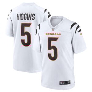 This Tee Higgins Cincinnati Bengals White Road Game Jersey – All Stitched is an essential piece of gear for any Cincinnati Bengals fan looking to highlight their favorite jersey and player. The Tee Higgins Cincinnati Bengals White Road Game Jersey and team details provide a kickoff-ready look that elevates your excitement for game day. Made with comfort in mind, this Personalized Cincinnati Bengals jersey delivers a standard, lightweight fit and features breathable mesh side panels for added ventilation.