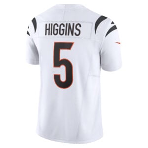 This Tee Higgins Cincinnati Bengals White Road Vapor F.U.S.E Limited Jersey – All Stitched is an essential piece of gear for any Cincinnati Bengals fan looking to highlight their favorite jersey and player. The Tee Higgins Cincinnati Bengals White Road Vapor F.U.S.E Limited Jersey and team details provide a kickoff-ready look that elevates your excitement for game day. Made with comfort in mind, this Personalized Cincinnati Bengals jersey delivers a standard, lightweight fit and features breathable mesh side panels for added ventilation.