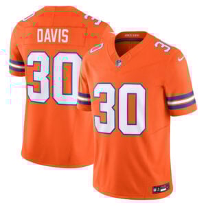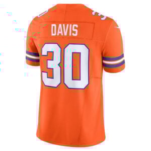 Bring retro Broncos heritage into the modern era with the Terrell Davis Mile High Collection Throwback Vapor F.U.S.E Limited Jersey. Designed in Colorado orange with stitched name, embroidered numbers, retro patch, and logos, this piece highlights Denver Broncos (DEN) history and Davis’ university-to-pro greatness.
