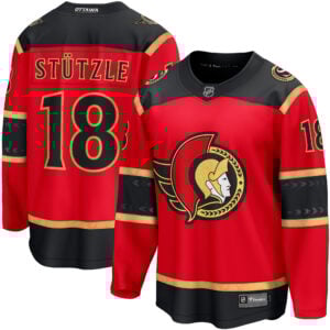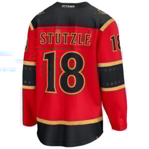 Stand out with the bold Tim Stutzle Red Alternate Jersey from the Ottawa Senators. This fiery red look captures the team’s relentless energy and Ontario state pride. Constructed with care, all logos, patches, numbers, and the player’s name are stitched and embroidered to perfection. Perfect for game days, this alternate design lets you represent your Sens pride with confidence and passion. A striking addition to any fan collection, this jersey connects classic Ottawa tradition with a modern, energized look.