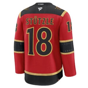 Celebrate the fiery passion of Ottawa Senators hockey with this Tim Stutzle Red Alternate Premium Jersey. The deep red base symbolizes strength and pride, while the bold striping connects to the team’s long-standing tradition in Ontario. Each letter, number, logo, and crest is expertly stitched and embroidered for a premium finish. Perfect for home games or watch parties, this alternate jersey gives you a standout look inspired by the relentless energy of the Senators’ young star. Bring your fandom to life and show your dedication to the Sens with this beautifully detailed jersey.