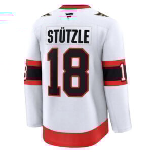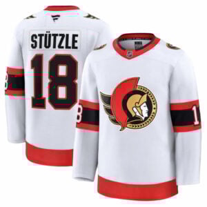 Rep the Ottawa Senators on every away trip with this Tim Stutzle White Road Premium Jersey. Featuring crisp white tones accented by the team’s classic red and black striping, this piece reflects the proud hockey heritage of Ontario’s capital city. Crafted with precision, the name, number, patch, and Senators logo are fully stitched and embroidered for a bold and lasting look. Designed for passionate Sens fans, it’s a true statement of loyalty whether you’re following the team on the road or showing off your state pride at home. Carry the energy of Ottawa hockey wherever you go in this clean, high-quality design.