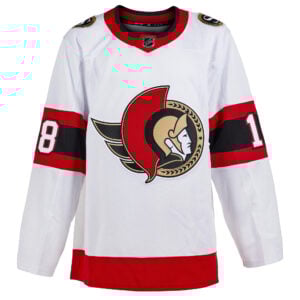 Bring sustainable energy to your Ottawa Senators fandom with the Tim Stutzle White Road Primegreen Jersey. Designed using environmentally friendly Primegreen materials, this jersey is as responsible as it is sharp. The embroidered name, number, crest, and logo stand out on the clean white base, perfectly complementing the team’s red and black accents. Celebrate Ontario’s hockey tradition with pride as you support the Senators and their rising star, Tim Stutzle. Whether at the rink or on the street, this jersey represents eco-performance and team loyalty in perfect harmony.
