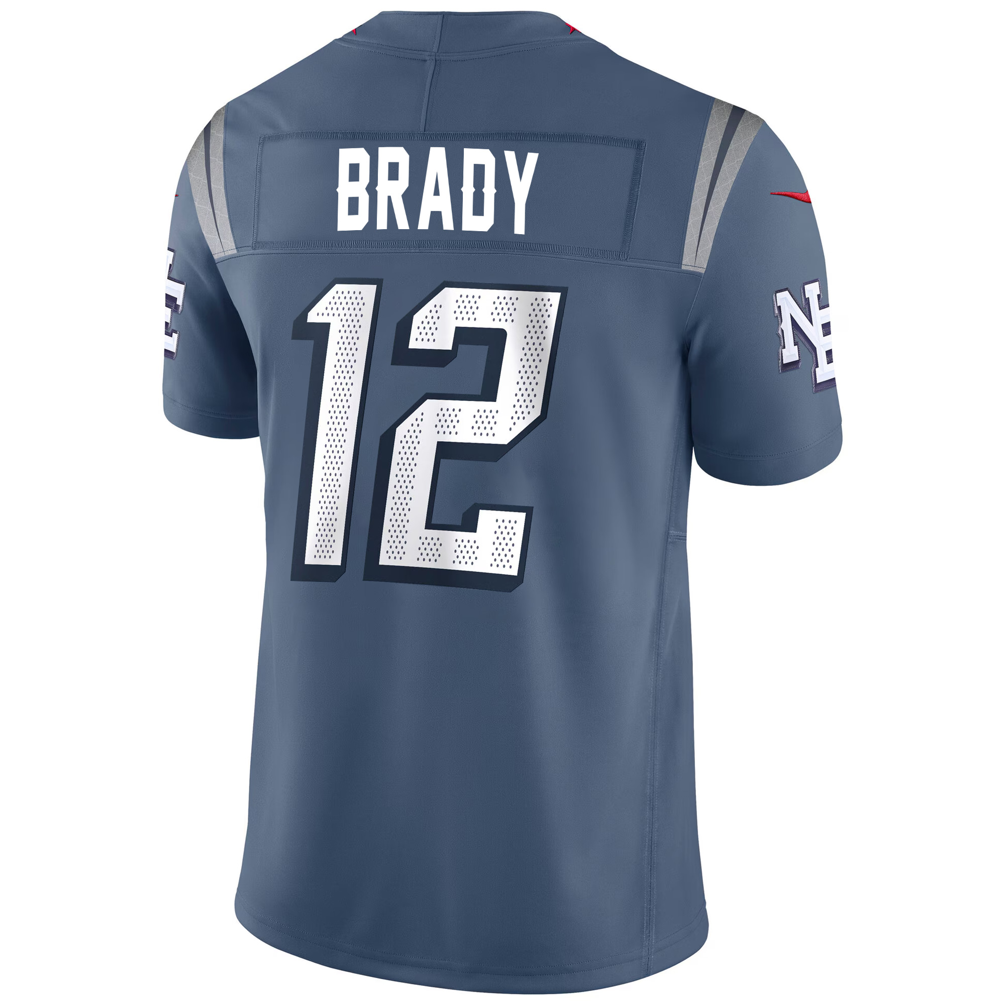 Honor greatness with the Tom Brady New England Patriots Storm Blue 2025 Rivalries Collection Limited Jersey. Rivalries Collection tradition pairs with Limited edition innovation, including Dri-FIT technology, standard fit, heat-transferred twill lettering and numbers, and a chainmaille mesh grill collar. With stitched logos, embroidered patch, number, and name, this jersey lets fans across New England proudly celebrate the legacy of the Patriots icon.
