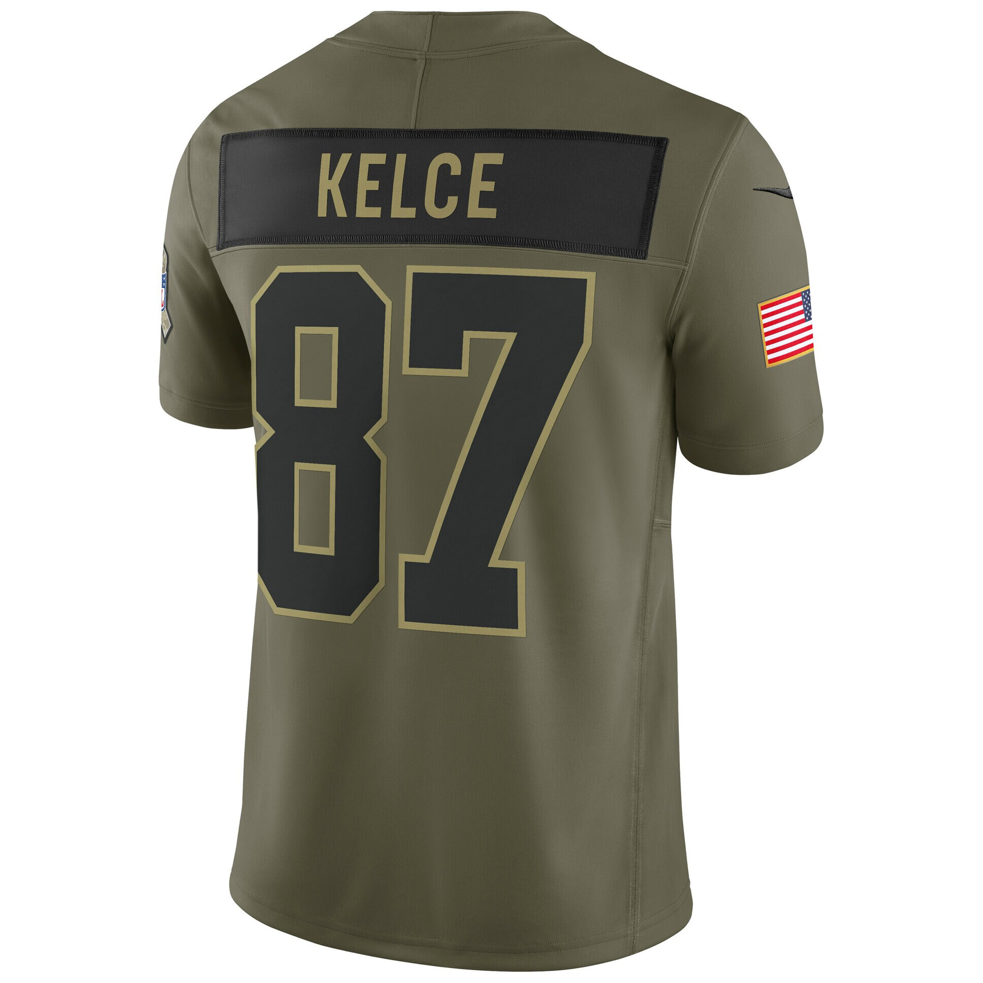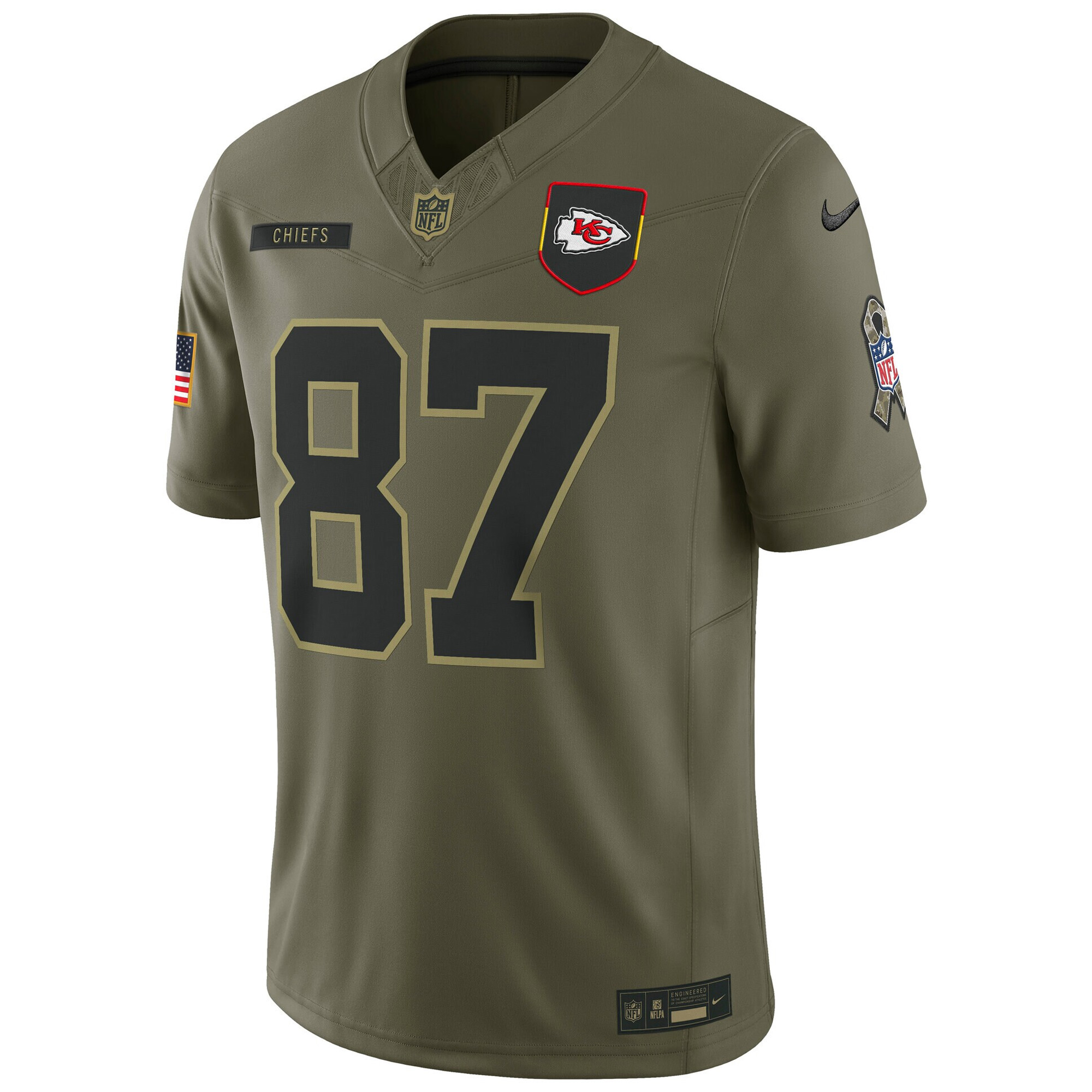 Travis Kelce Kansas City Chiefs Olive 2025 Salute To Service Limited Jersey – All Stitched