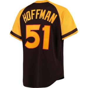 This Trevor Hoffman San Diego Padres Gold Brown Cooperstown Collection Jersey – All Stitched is an essential piece of gear for any San Diego Padres fan looking to highlight their favorite jersey and player. The Trevor Hoffman San Diego Padres Gold Brown Cooperstown Collection Jersey and team details provide a kickoff-ready look that elevates your excitement for game day. Made with comfort in mind, this Trevor Hoffman San Diego Padres jersey delivers a standard, lightweight fit and features breathable mesh side panels for added ventilation.
