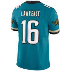 Honor tradition in high-tech style with the Trevor Lawrence Jacksonville Jaguars Teal Prowler Throwback Vapor F.U.S.E Limited Jersey – All Stitched. A perfect mix of heritage and innovation, it features a standard fit, Dri-FIT technology, heat-transferred twill elements, and a chainmaille mesh grill at the collar. With stitched name and number, embroidered Jaguars patches, and timeless Florida pride, this jersey unites past and present for Jacksonville fans.