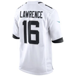 Bring Florida spirit on the road with the Trevor Lawrence Jacksonville Jaguars White Road Game Jersey – All Stitched. The clean white base with sharp teal and black accents represents the Jaguars across every stadium nationwide. With Trevor Lawrence’s stitched number, embroidered patches, and detailed JAX logos, this jersey ensures that Jacksonville pride travels with you wherever the team competes.
