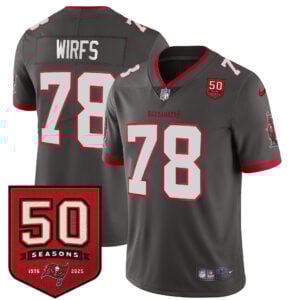 Tristan Wirfs Tampa Bay Buccaneers 50th Season Pewter Alternate Vapor Limited Jersey – All Stitched enhances the alternate pewter with anniversary details. Stitched numbers, embroidered team logos, and commemorative patches show Florida football spirit and Tampa Bay Buccaneers tradition.