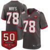 Tristan Wirfs Tampa Bay Buccaneers 50th Season White Away Game Jersey – All Stitched offers a clean tribute to 50 years of Buccaneers history. Wirfs’ stitched numbers, embroidered nameplate, and anniversary patches reflect Florida pride while honoring Tampa Bay’s half-century on the field.