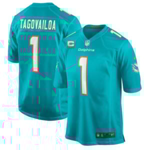 Tua Tagovailoa Miami Dolphins Aqua Game Jersey - All Stitched