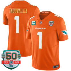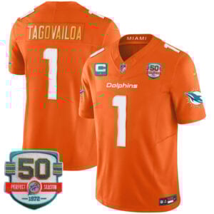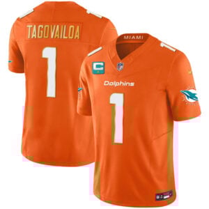 Tua Tagovailoa Miami Dolphins Orange “Gold Trim” Vapor F.U.S.E Limited Jersey – All Stitched