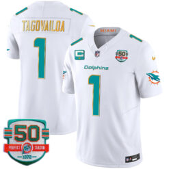Tua Tagovailoa Miami Dolphins White “Gold Trim” Vapor F.U.S.E Limited Jersey – All Stitched