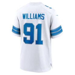 This Tyleik Williams Detroit Lions White Away Game Jersey – All Stitched is an essential piece of gear for any Detroit Lions fan looking to highlight their favorite jersey and player. The Tyleik Williams Detroit Lions White Away Game Jersey and team details provide a kickoff-ready look that elevates your excitement for game day. Made with comfort in mind, this Tyleik Williams Detroit Lions jersey delivers a standard, lightweight fit and features breathable mesh side panels for added ventilation.