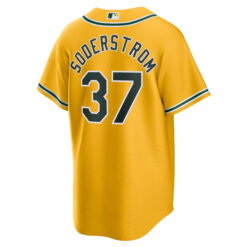 This Tyler Soderstrom Oakland Athletics Gold Alternate Jersey – All Stitched is an essential piece of gear for any Oakland Athletics fan looking to highlight their favorite jersey and player. The Tyler Soderstrom Oakland Athletics Gold Alternate Jersey and team details provide a kickoff-ready look that elevates your excitement for game day. Made with comfort in mind, this Oakland Athletics jersey delivers a standard, lightweight fit and features breathable mesh side panels for added ventilation.