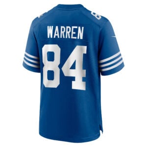 This Tyler Warren Indianapolis Colts Royal Blue Alternate Game Jersey – All Stitched is an essential piece of gear for any Indianapolis Colts fan looking to highlight their favorite jersey and player. The Tyler Warren Indianapolis Colts Royal Blue Alternate Game Jersey and team details provide a kickoff-ready look that elevates your excitement for game day. Made with comfort in mind, this Personalized Indianapolis Colts jersey delivers a standard, lightweight fit and features breathable mesh side panels for added ventilation.