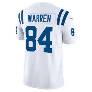 This Tyler Warren Indianapolis Colts White Away Vapor F.U.S.E Limited Jersey – All Stitched is an essential piece of gear for any Indianapolis Colts fan looking to highlight their favorite jersey and player. The Tyler Warren Indianapolis Colts White Away Vapor F.U.S.E Limited Jersey and team details provide a kickoff-ready look that elevates your excitement for game day. Made with comfort in mind, this Personalized Indianapolis Colts jersey delivers a standard, lightweight fit and features breathable mesh side panels for added ventilation.