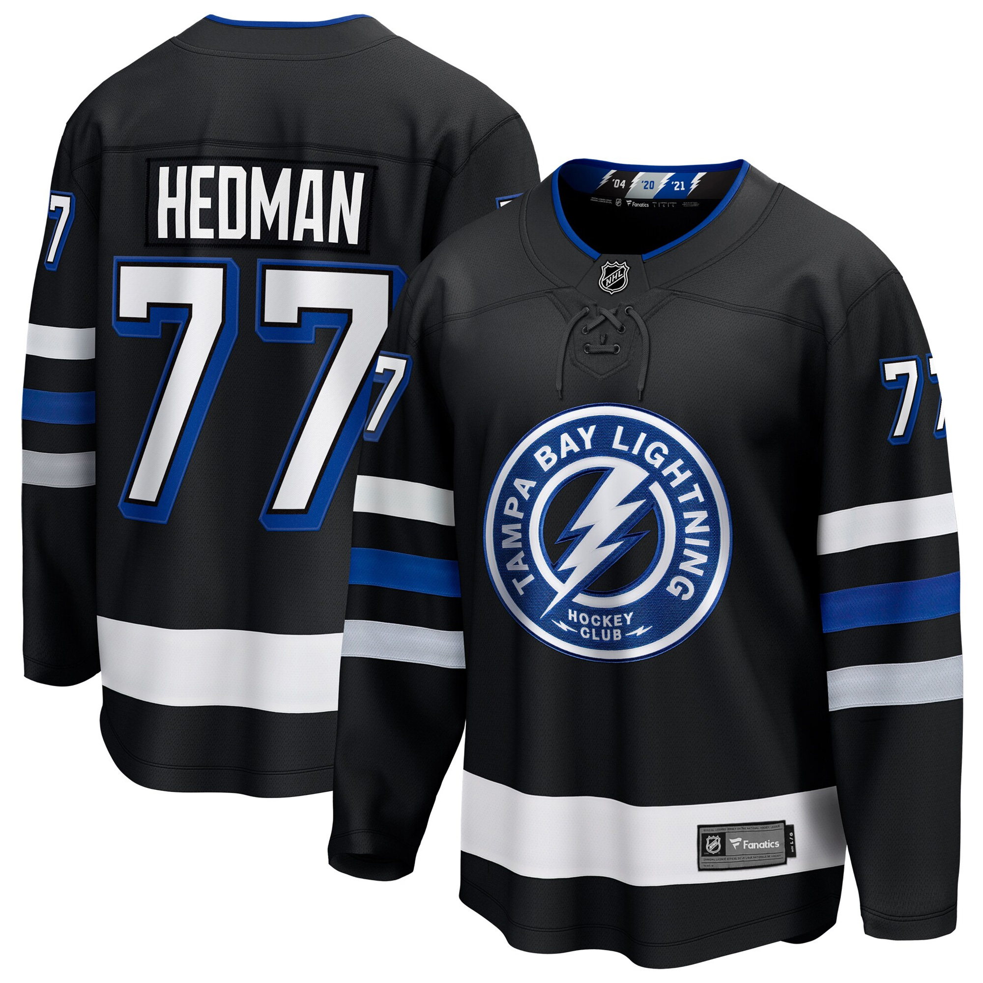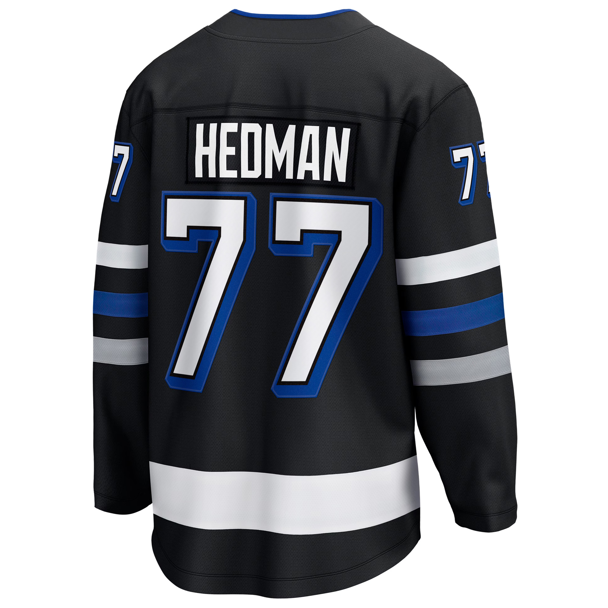 Go bold with the Victor Hedman Tampa Bay Lightning Black Alternate Jersey – All Stitched, designed for those who thrive on intensity. The embroidered logos, stitched numbering, and unique black design reflect Tampa Bay’s relentless drive and unmistakable style under the Florida lights.