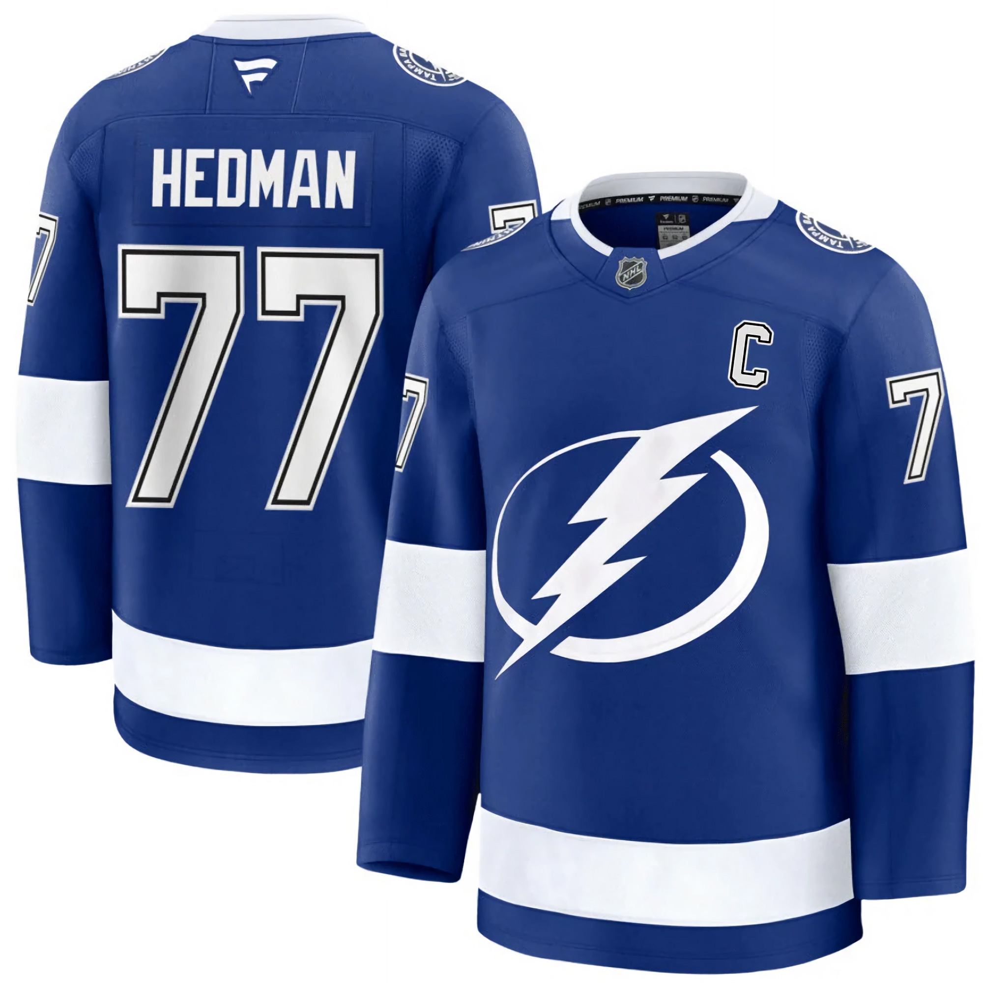 Stand tall with the Victor Hedman Tampa Bay Lightning Royal Home Premium Jersey – All Stitched, a tribute to one of Florida’s finest defenders and the proud spirit of the Tampa Bay Lightning. This royal blue jersey represents the heart of Tampa Bay hockey, featuring stitched player name and number, embroidered team logo, and detailed shoulder patches. The bold Lightning bolt crest across the chest shines as a symbol of dominance and determination, perfect for fans who live for the roar of Amalie Arena.