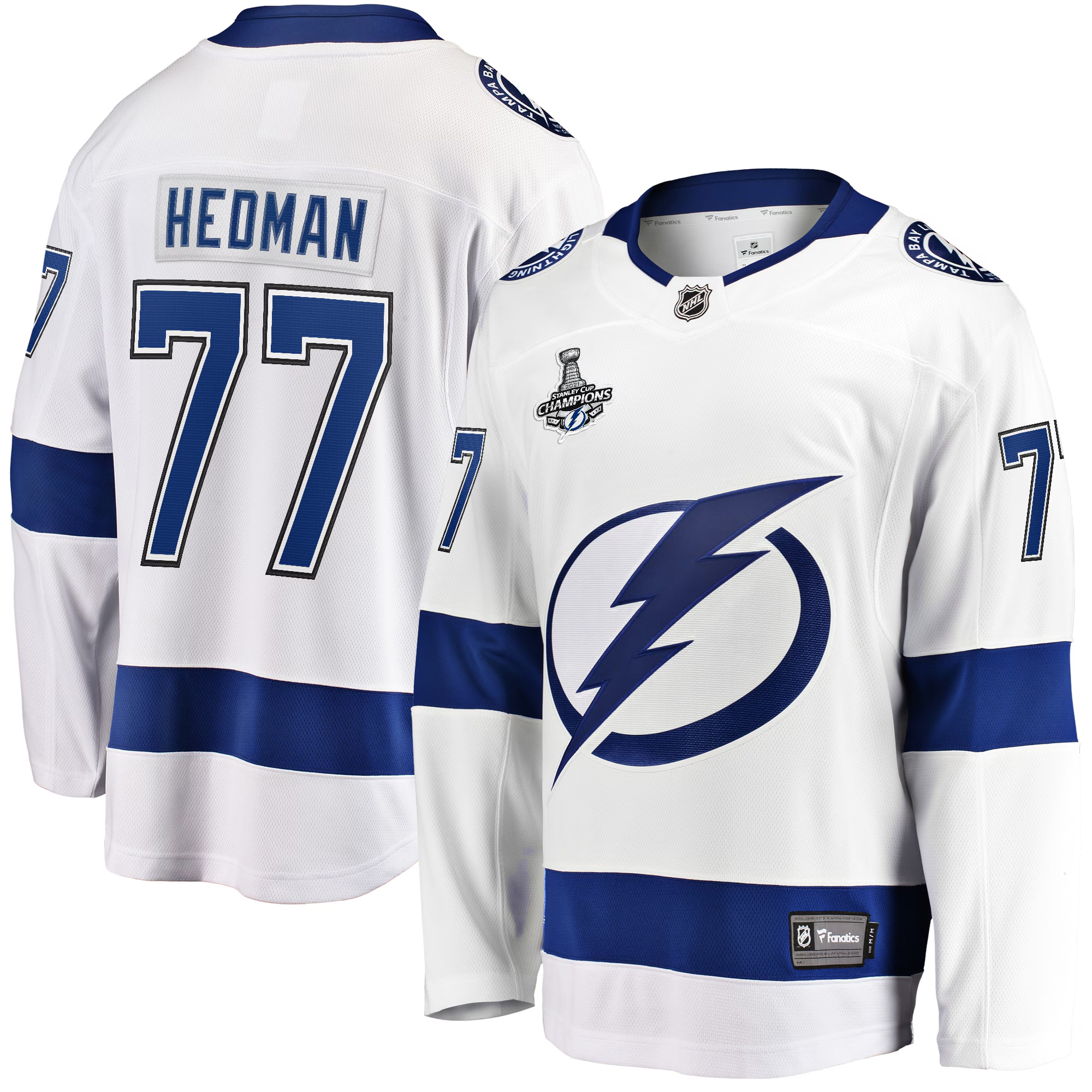 Show your loyalty on the road with the Victor Hedman Tampa Bay Lightning White Away Jersey – All Stitched. Featuring embroidered Lightning logos, stitched name and number, and refined team graphics, this piece represents Tampa Bay unity and the unwavering support of its fans across Florida.