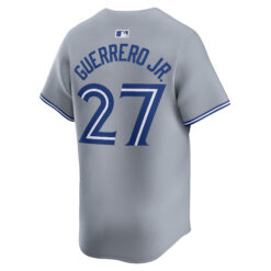 This Vladimir Guerrero Jr Toronto Blue Jays Grey Road Limited Jersey – All Stitched is an essential piece of gear for any Toronto Blue Jays fan looking to highlight their favorite jersey and player. The Vladimir Guerrero Jr Toronto Blue Jays Grey Road Limited Jersey and team details provide a kickoff-ready look that elevates your excitement for game day. Made with comfort in mind, this Toronto Blue Jays jersey delivers a standard, lightweight fit and features breathable mesh side panels for added ventilation.