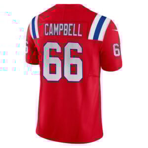 This Will Campbell New England Patriots Red Alternate Vapor F.U.S.E Limited Jersey – All Stitched is an essential piece of gear for any New England Patriots fan looking to highlight their favorite jersey and player. The Will Campbell New England Patriots Red Alternate Vapor F.U.S.E Limited Jersey and team details provide a kickoff-ready look that elevates your excitement for game day. Made with comfort in mind, this Will Campbell New England Patriots jersey delivers a standard, lightweight fit and features breathable mesh side panels for added ventilation.