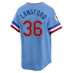 This Wyatt Langford Texas Rangers Light Blue 1981-82 Cooperstown Limited Jersey – All Stitched is an essential piece of gear for any Texas Rangers fan looking to highlight their favorite jersey and player. The Wyatt Langford Texas Rangers Light Blue 1981-82 Cooperstown Limited Jersey and team details provide a kickoff-ready look that elevates your excitement for game day. Made with comfort in mind, this Texas Rangers jersey delivers a standard, lightweight fit and features breathable mesh side panels for added ventilation.