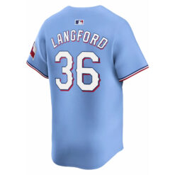 This Wyatt Langford Texas Rangers Light Blue Alternate Limited Jersey – All Stitched is an essential piece of gear for any Texas Rangers fan looking to highlight their favorite jersey and player. The Wyatt Langford Texas Rangers Light Blue Alternate Limited Jersey and team details provide a kickoff-ready look that elevates your excitement for game day. Made with comfort in mind, this Texas Rangers jersey delivers a standard, lightweight fit and features breathable mesh side panels for added ventilation.