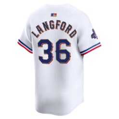 This Wyatt Langford Texas Rangers White 2024 Gold Collection Limited Jersey – All Stitched is an essential piece of gear for any Texas Rangers fan looking to highlight their favorite jersey and player. The Wyatt Langford Texas Rangers White 2024 Gold Collection Limited Jersey and team details provide a kickoff-ready look that elevates your excitement for game day. Made with comfort in mind, this Texas Rangers jersey delivers a standard, lightweight fit and features breathable mesh side panels for added ventilation.