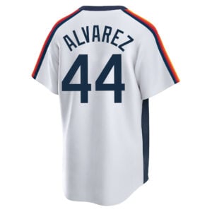 This Yordan Alvarez Houston Astros White Cooperstown Collection Jersey – All Stitched is an essential piece of gear for any Yordan Alvarez Houston Astros fan looking to highlight their favorite jersey and player. The Yordan Alvarez Houston Astros White Cooperstown Collection Jersey and team details provide a kickoff-ready look that elevates your excitement for game day. Made with comfort in mind, this Yordan Alvarez Houston Astros jersey delivers a standard, lightweight fit and features breathable mesh side panels for added ventilation.
