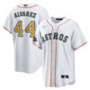 This Yordan Alvarez Houston Astros White Orange Cooperstown Collection Jersey – All Stitched is an essential piece of gear for any Yordan Alvarez Houston Astros fan looking to highlight their favorite jersey and player. The Yordan Alvarez Houston Astros White Orange Cooperstown Collection Jersey and team details provide a kickoff-ready look that elevates your excitement for game day. Made with comfort in mind, this Yordan Alvarez Houston Astros jersey delivers a standard, lightweight fit and features breathable mesh side panels for added ventilation.